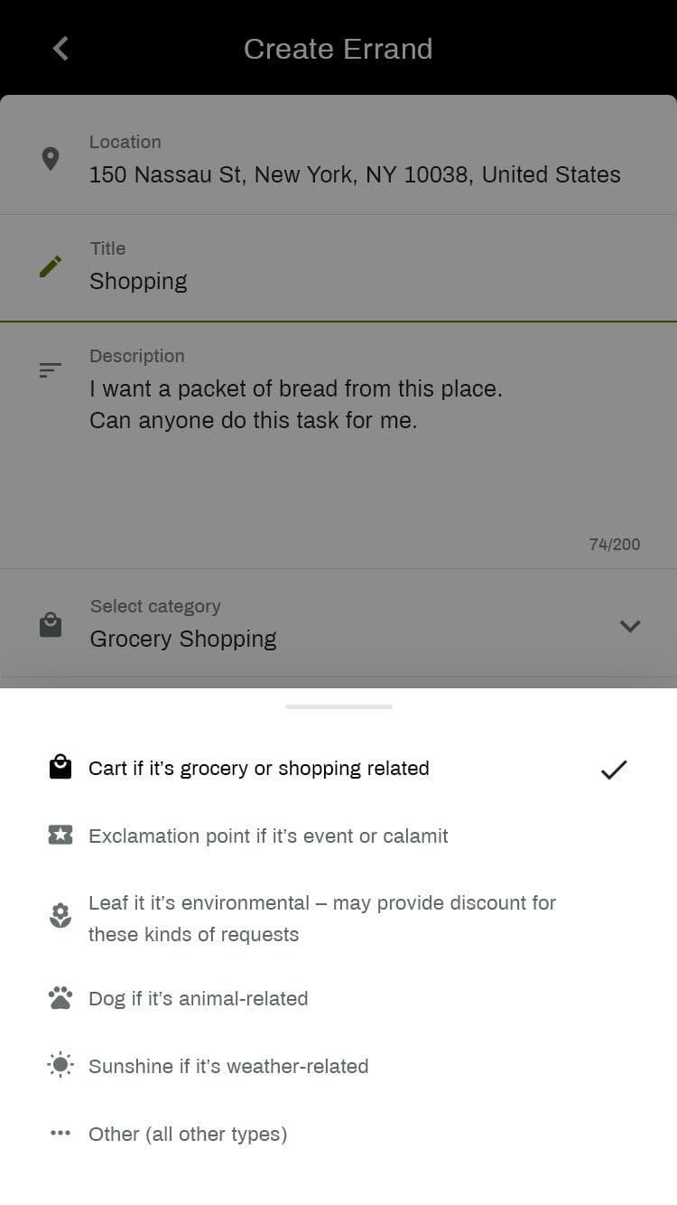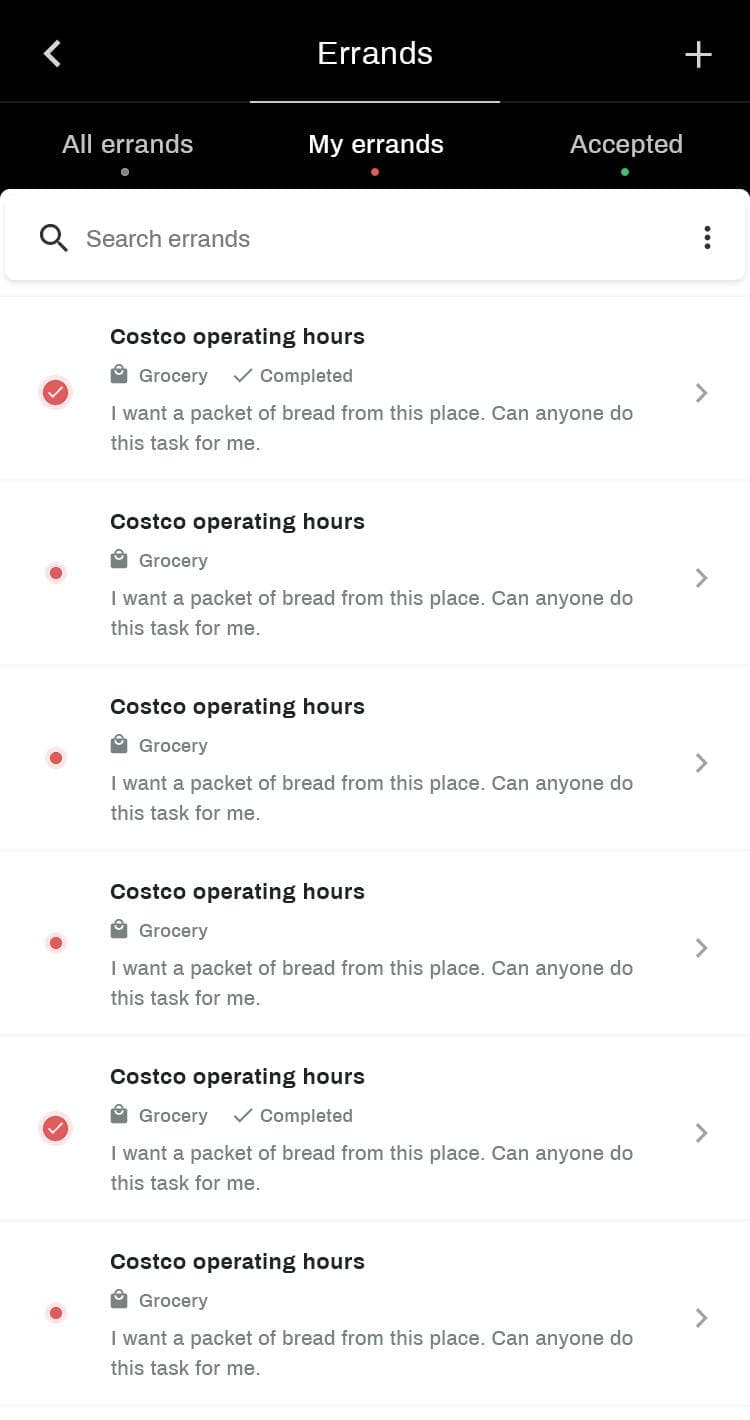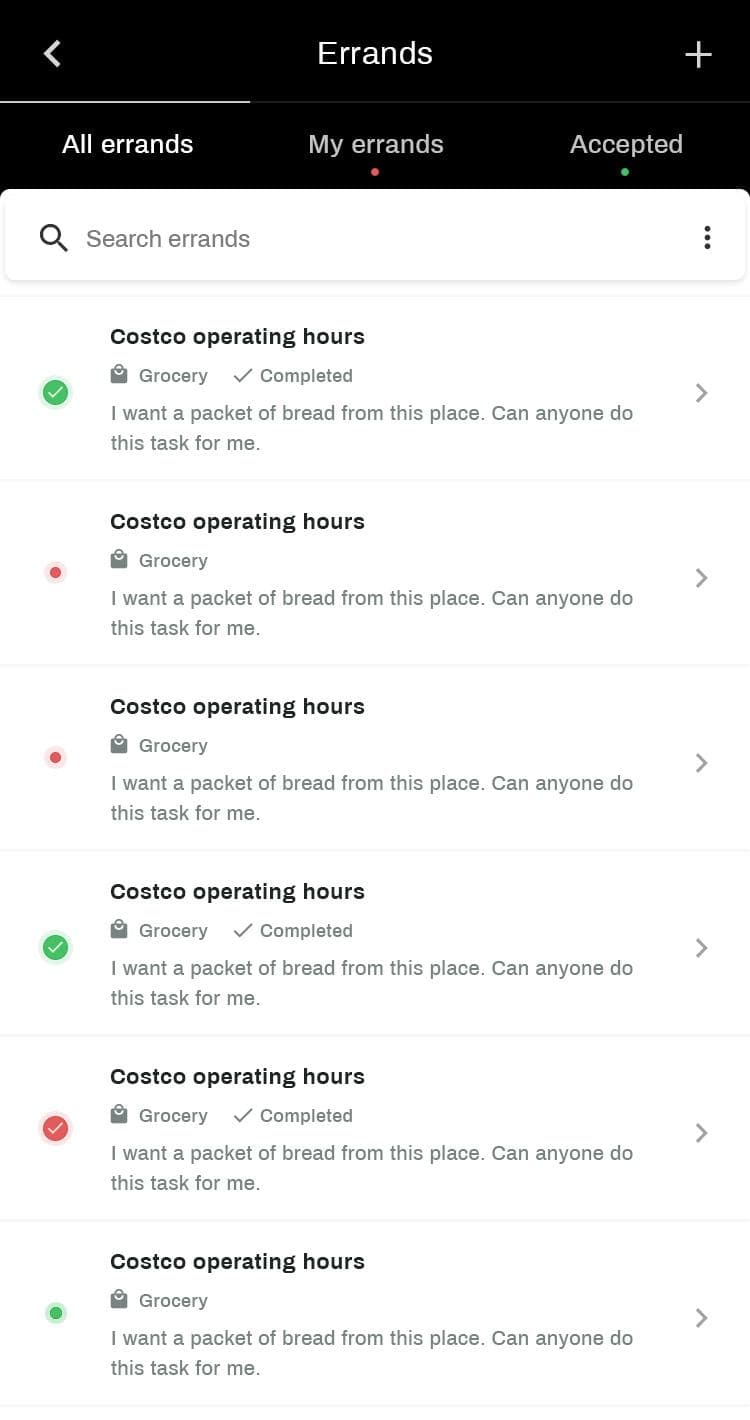 User can apply filter like category, distance, price range, date, to satisfy their criteria for filtering the errand and choose best match possible errand to accept.