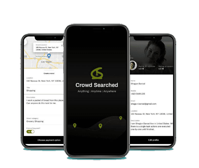 The Crowd Searched app contains unique features with easy navigation and a great user experience with smooth functionality so that anyone can create errands. It displays maps that can be used to create errands on the fly. There is a whole cycle of creating errands, accepting and satisfactory completing, the flow of transaction of money from creator to finisher of the task. Stripe is the payment processor utilized in this app.